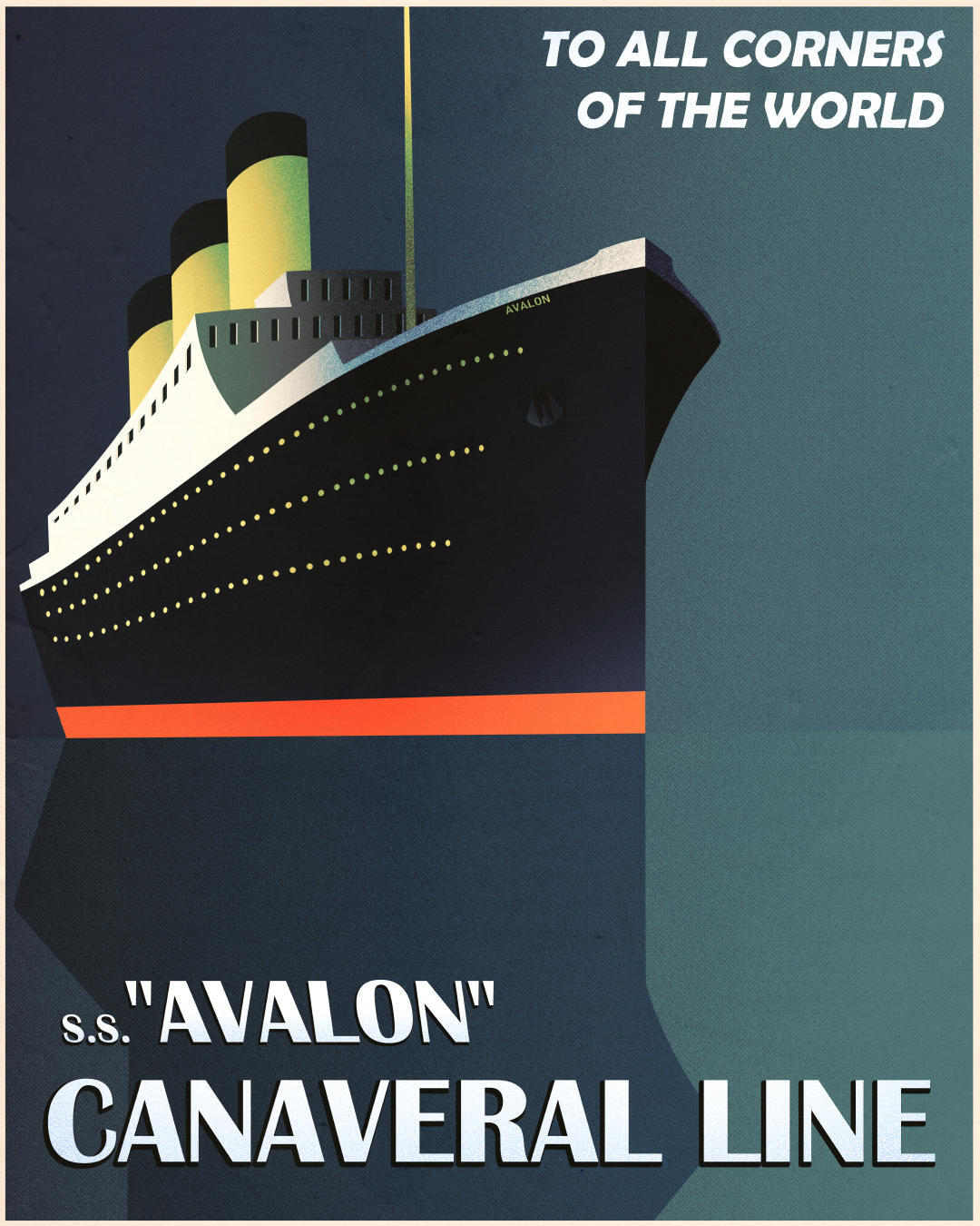 The majority of the group takes place, naturally, aboard the SS Avalon, a grand ocean liner chartered to house and transport the expedition from port to port. As the latest vessel of The Canaveral Line, the ship is said to feature “43,000 Gross Register Tonnage of pure luxury.” It's facilities are capable of accommodating up to 1,700 passengers in what’s been described as an Art Deco elysium.The Avalon has been outfitted with state-of-the-art laboratory equipment for the occasion, ready for the handling and processing of any number of scientific inquiries. The Avalon has also been outfitted with the longest cocktail bar currently at sea, in addition (but not limited) to a swimming pool, bowling alley, 350-seat cinema, Punch & Judy Children’s theatre, merry-go-round, shooting gallery, tobacconist, gothic-style chapel, and any number of shops ready for the patronage of its guests.